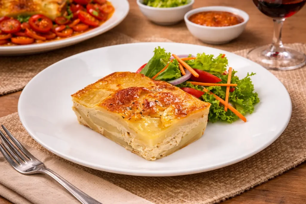 El pastel de papa arequipeño es uno de los platos más representativos del sur del Perú. Preparado con capas de papa sancochada, anis y el queso fresco, es un plato contundente y lleno de sabor.